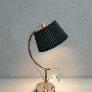 Modern Gold Curved Table Lamp with Pleated Black Shade / Butterfly Accent Desk Light