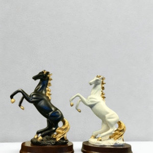 Galloping Grace: Dynamic Black & White Horse Sculptures