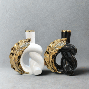🫂 Knotted Elegance: Black & White Golden Feather Vases 🫂