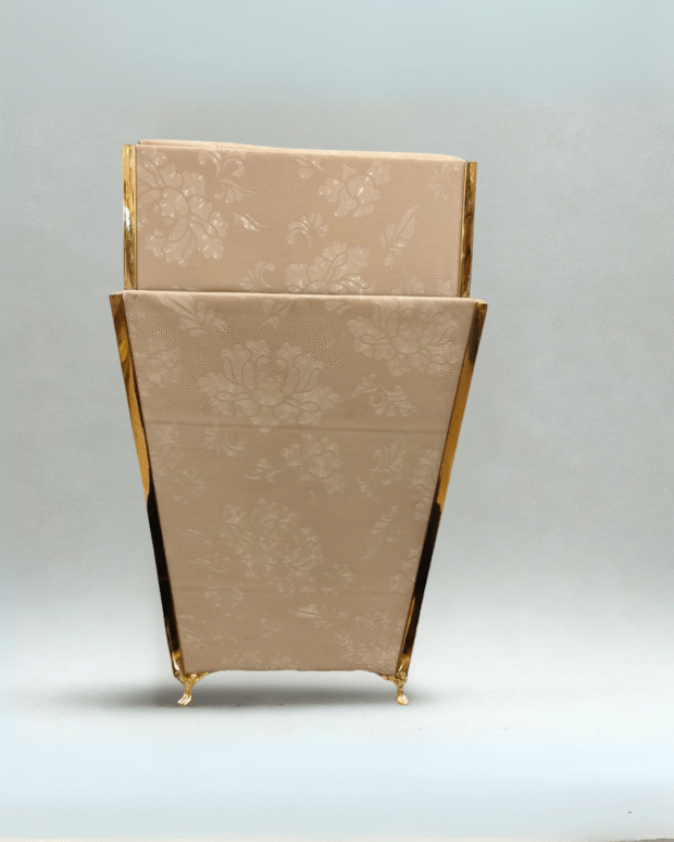 🌷 Gentle beige fabric with a delicate embossed floral pattern ✨ Elegant gold trim and charming golden feet on the waste bin 🏡 Ideal for adding a warm, sophisticated, and tranquil touch to any room 🎁 A thoughtful and beautiful gift for housewarmings, weddings, or anyone who appreciates classic, refined decor