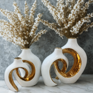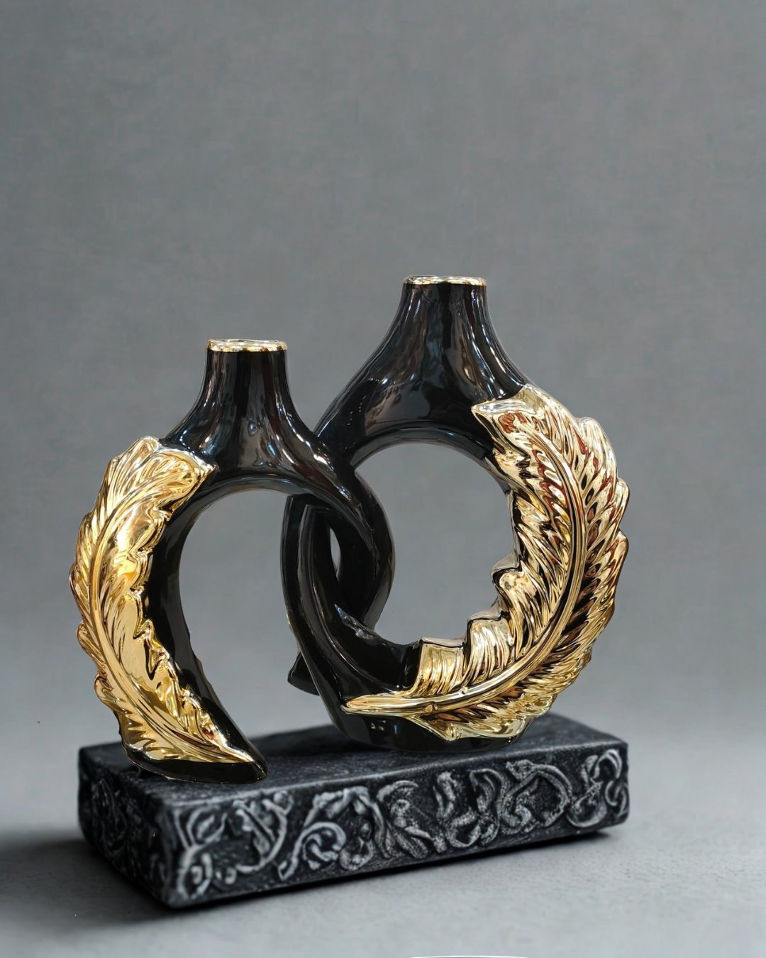 SKU: N/A Category: Vase Set Tag: #TheDesireHomes #UnitySculpture #GoldenFeathers #ModernDecor #LuxuryHome #GiftForCouples #ElegantArt #BlackAndGoldDecor #IntertwinedLove #HomeOfHarmony