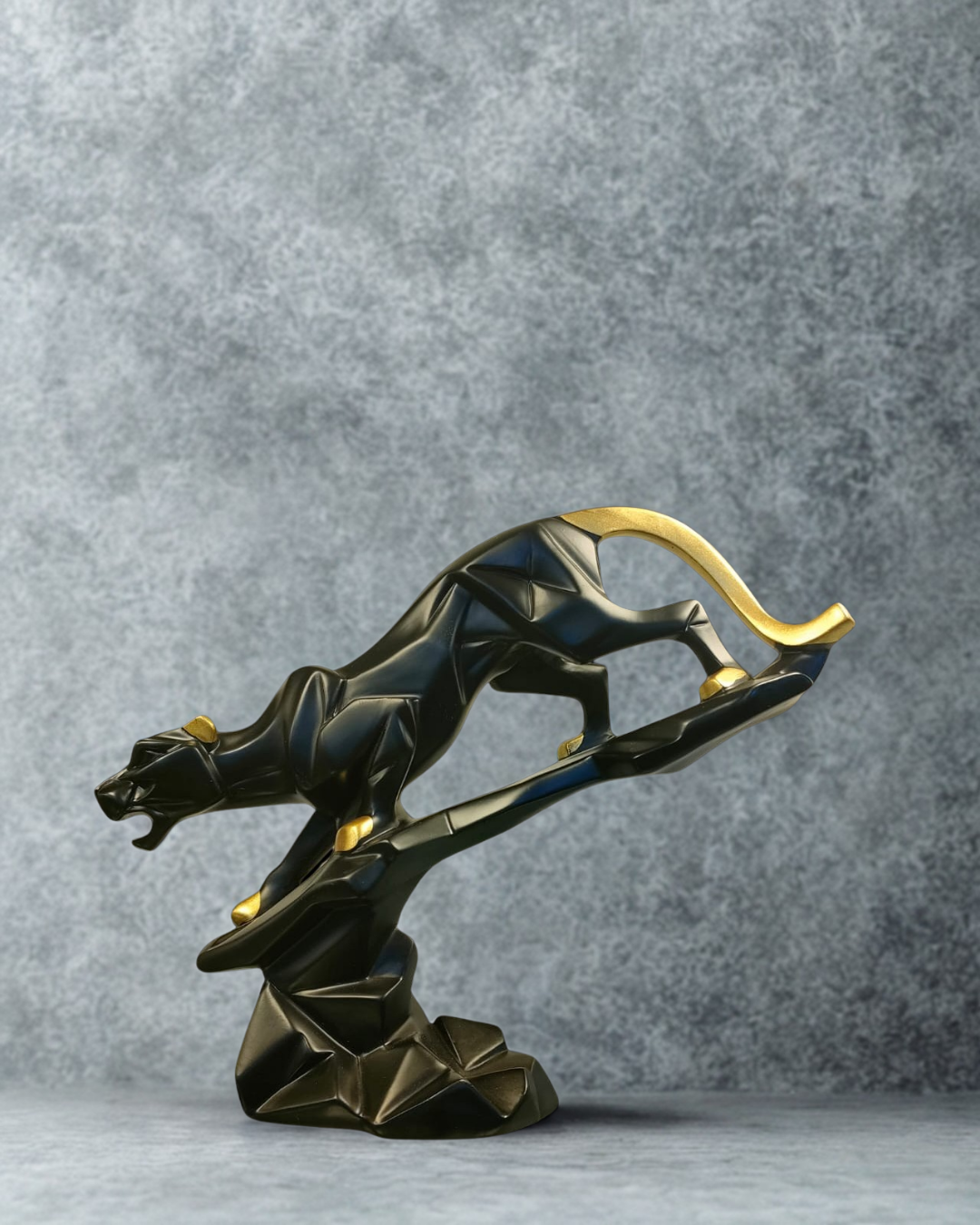 Be the first to review “Apex Predator: Geometric Black & Gold Panther Sculpture” Cancel reply