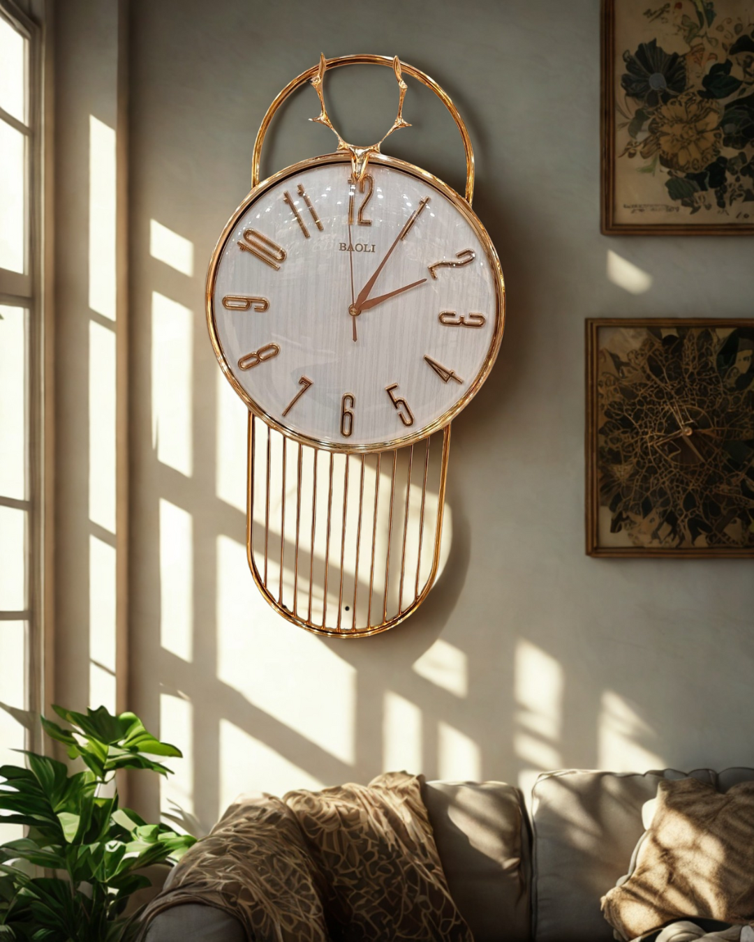 This clock is a beautiful fusion of art and functionality, ideal for living rooms, entryways, or studies where you want to add a distinctive, high-style element without overwhelming the space.