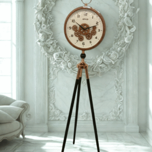 Introduce a touch of sophisticated charm and mechanical intrigue to your home with our Elegant Steampunk Tripod Floor Clock collection. These stunning timepieces are designed to be a captivating focal point, offering three distinct yet refined face color options: a sleek Silver, a serene Teal, and a rich Classic Gold.