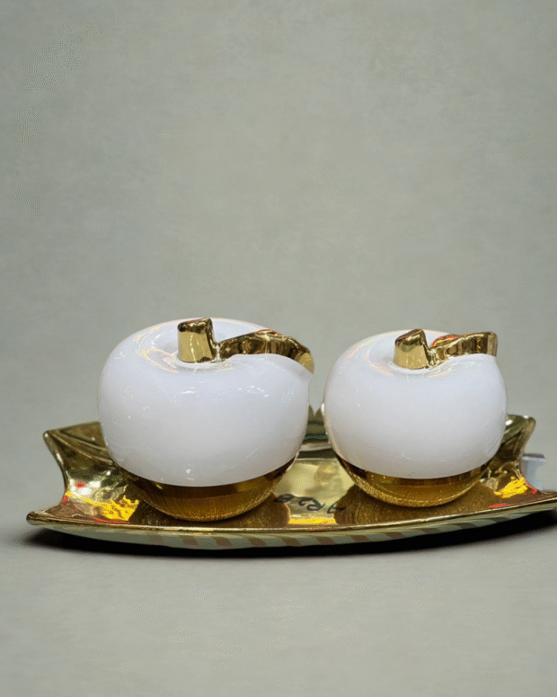 Be the first to review “Gilded Delights: White Apple Decor with Gold Tray” Cancel reply