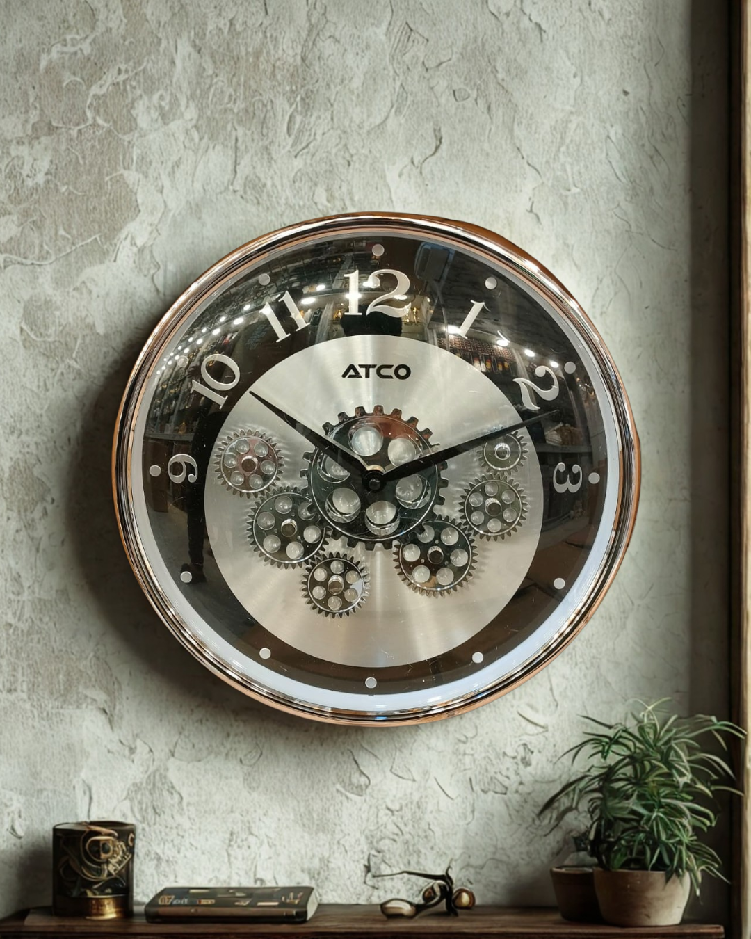 Make a bold, industrial statement with this High-Contrast Metallic Wall Clock. This stunning timepiece expertly combines a unique color palette and mechanical design, perfect for urban, loft, industrial, or modern settings.