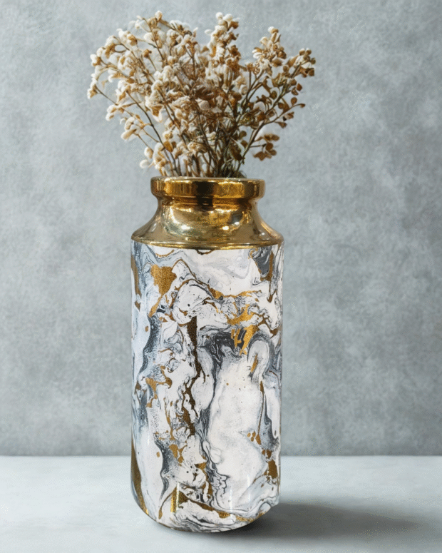 • Modern Black, White, & Gold Marble Swirl Vase / Luxury Gilded Cylinder Vessel Modern Black, White, & Gold Marble Swirl Vase / Luxury Gilded Cylinder Vessel ₨ 6,999 Original price was: ₨ 6,999.₨ 4,499Current price is: ₨ 4,499.