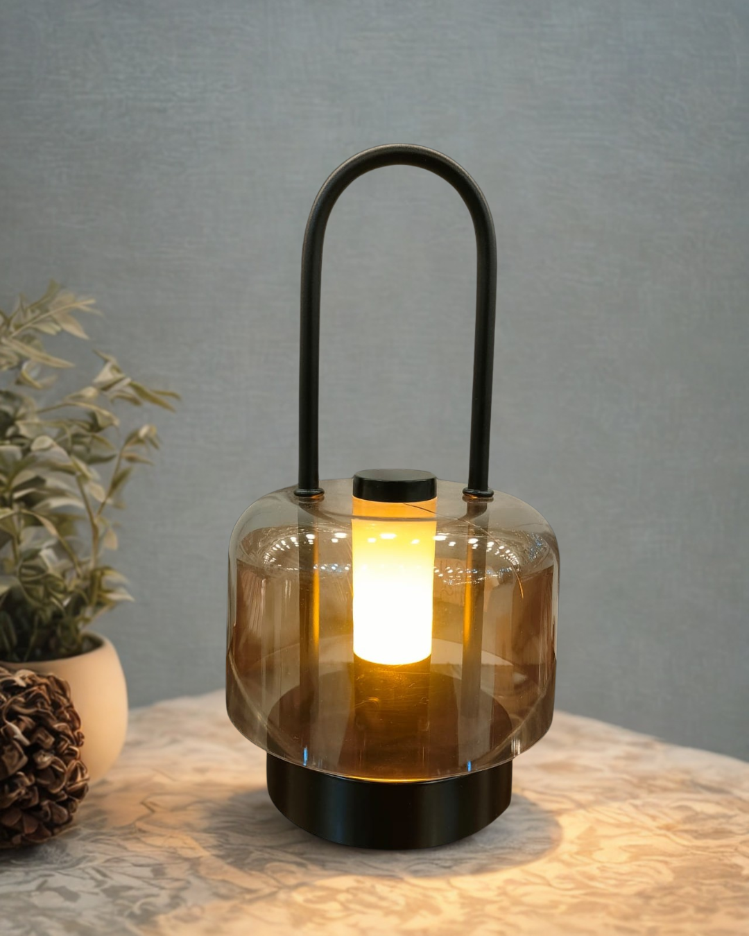 Illuminate your moments, anywhere, with our Modern Smoked Glass LED Lantern.