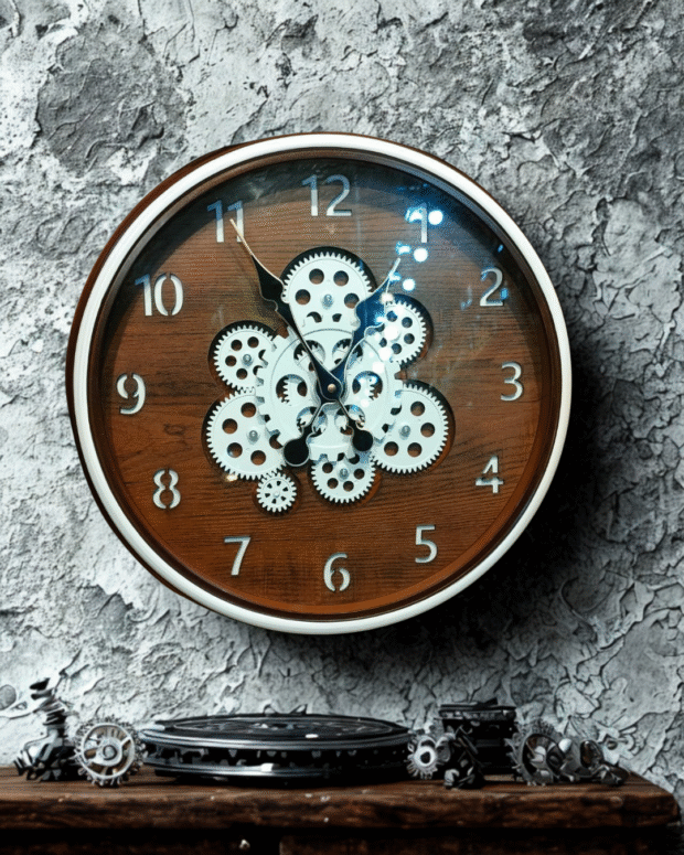 Where nature meets mechanics in beautiful harmony! ✨ This captivating wall clock features an enchanting display of exposed white gears set against a rich, warm wooden backdrop. Framed by a classic white and brown rim, it perfectly blends industrial chic with inviting rustic warmth. Ideal for adding a touch of intriguing mechanical artistry and cozy appeal to your living room, study, or even a sophisticated workshop.