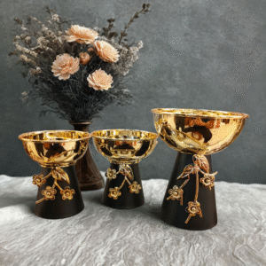 🫂 Earthy Opulence: Black & Gold Floral Pedestal Bowls 🫂