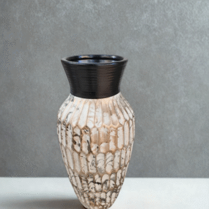 Short Abstract Textured Vessel with Black Collar / Modern Rustic Tabletop Accent